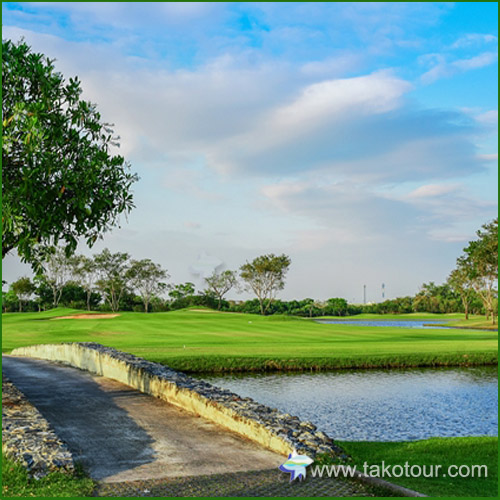 バンプーゴルフ&スポーツクラブはアーノルドパーマーが唯一タイ国内でデザインしたコースで1991年オープンです。シャム湾に面した起伏地にあり、成長した大きな木々、数多くのワイルドフラワーが咲き誇るです。海沿いの土地にあるので最も暑い時期でも心地よい風が吹くが、風を読むのは難しく、特に午後は海風が強くなるので頻?にプレーに影響を与えることもあります。
